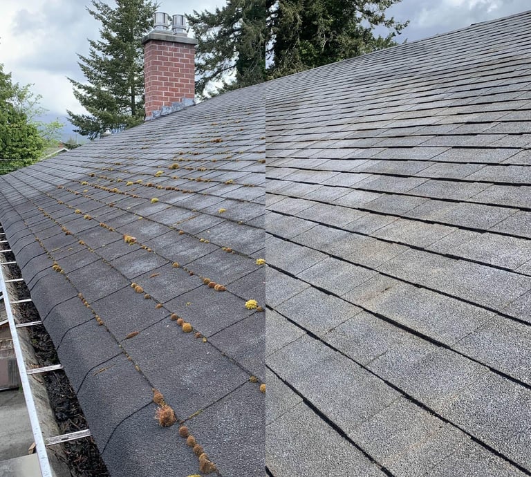 At Fortitude Services, roof cleaning is about protecting your home and extending the life of your roof. In Powell River’s wet coastal climate, moss, algae, and lichen can trap moisture, cause leaks, and damage shingles if left untreated. I focus on safe, thorough cleaning that removes buildup without harming your roof.